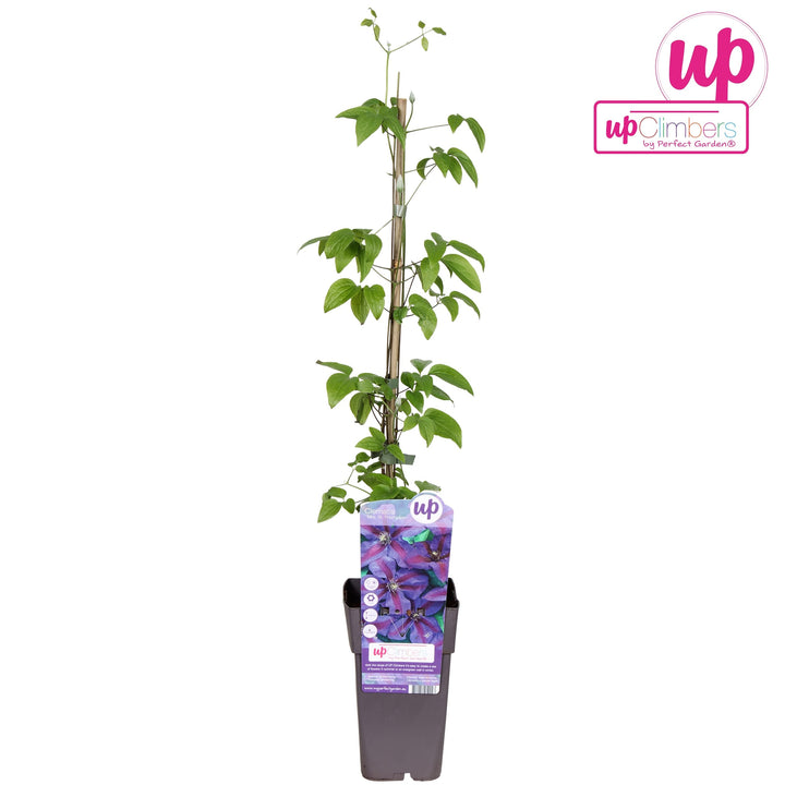 Clematis 'Mrs. Norman Thompson' is a compact and hardworking clematis, which produces flowers over a long period, from May to July, with a welcome second wave of flowering in September. The large flowers (approx. 10 cm), discreetly fragrant, are deep and rich purple, with intense carmine stripes. They open completely to reveal attractive wine-red and cream colored anthers.