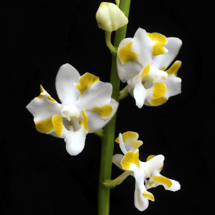 Phalaenopsis pulcherrima var. champorensis alba - peloric form of the species. Grows compactly and blooms abundantly. Can flower twice a year, with 1-3 flower spikes at each rebloom.