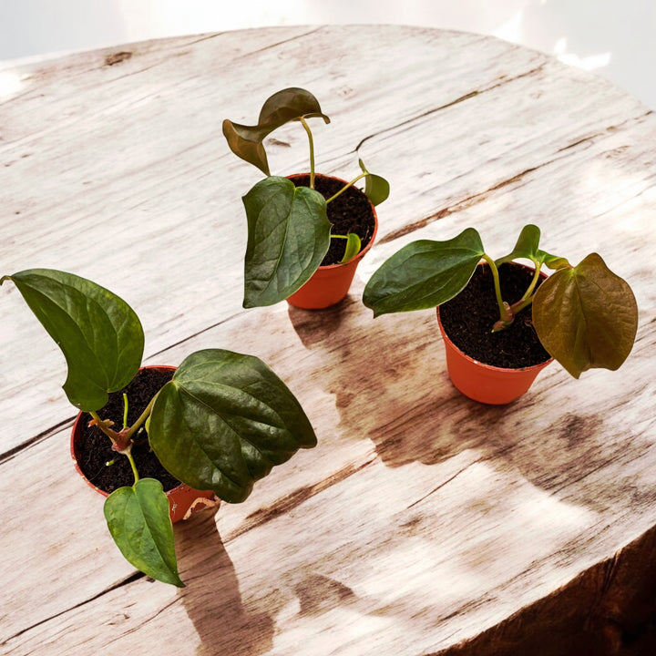 Anthurium ‘Queen of Hearts’ este o varietate rara si spectaculoasa, renumita pentru frunzele sale mari, in forma de inima, cu o textura catifelata si nervuri pronuntate ce creeaza un efect vizual dramatic. Aceasta planta impresionanta este un adevarat punct de atractie in orice colectie, fiind apreciata atat pentru dimensiunile sale impresionante, cat si pentru aspectul sau luxuriant.